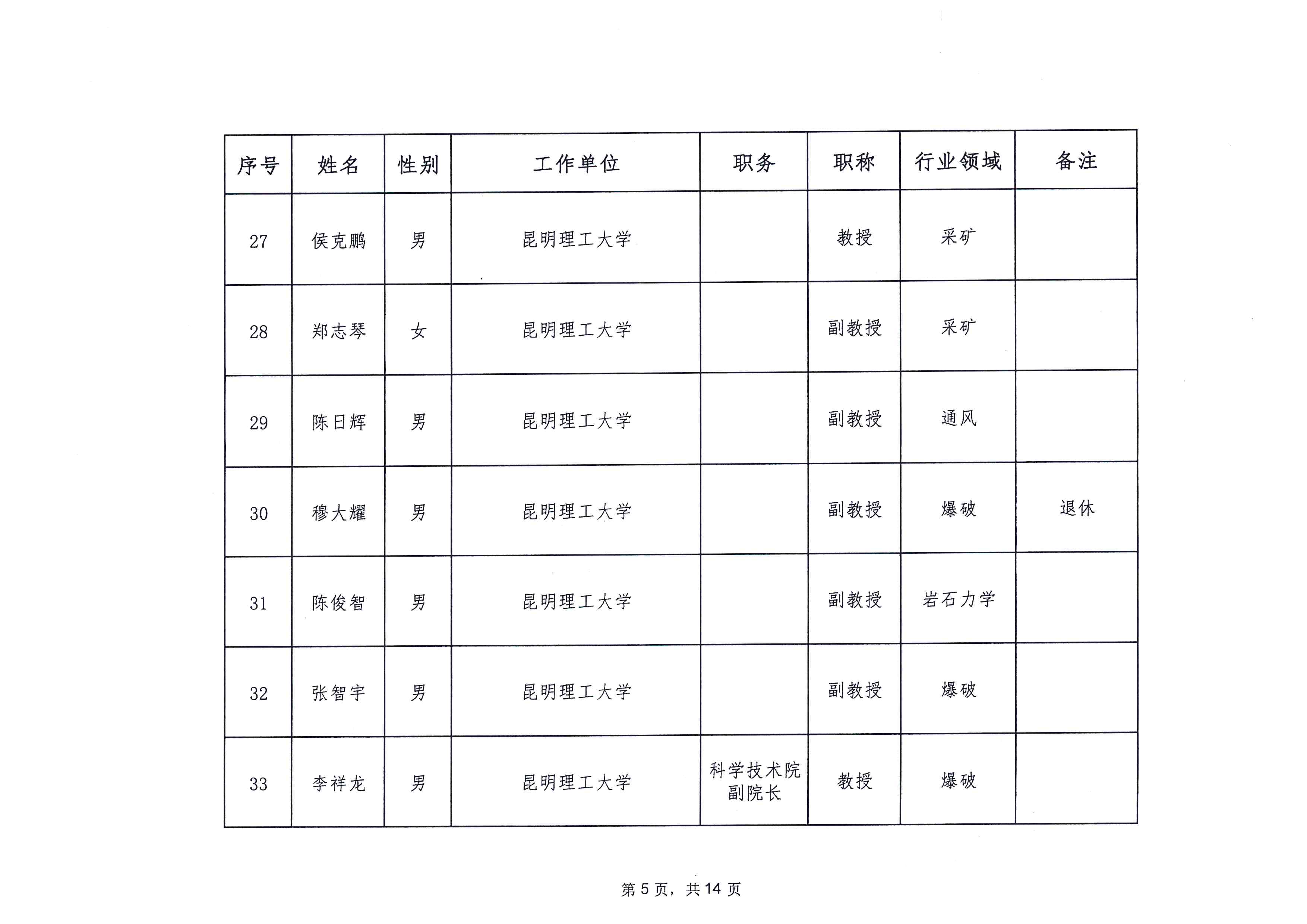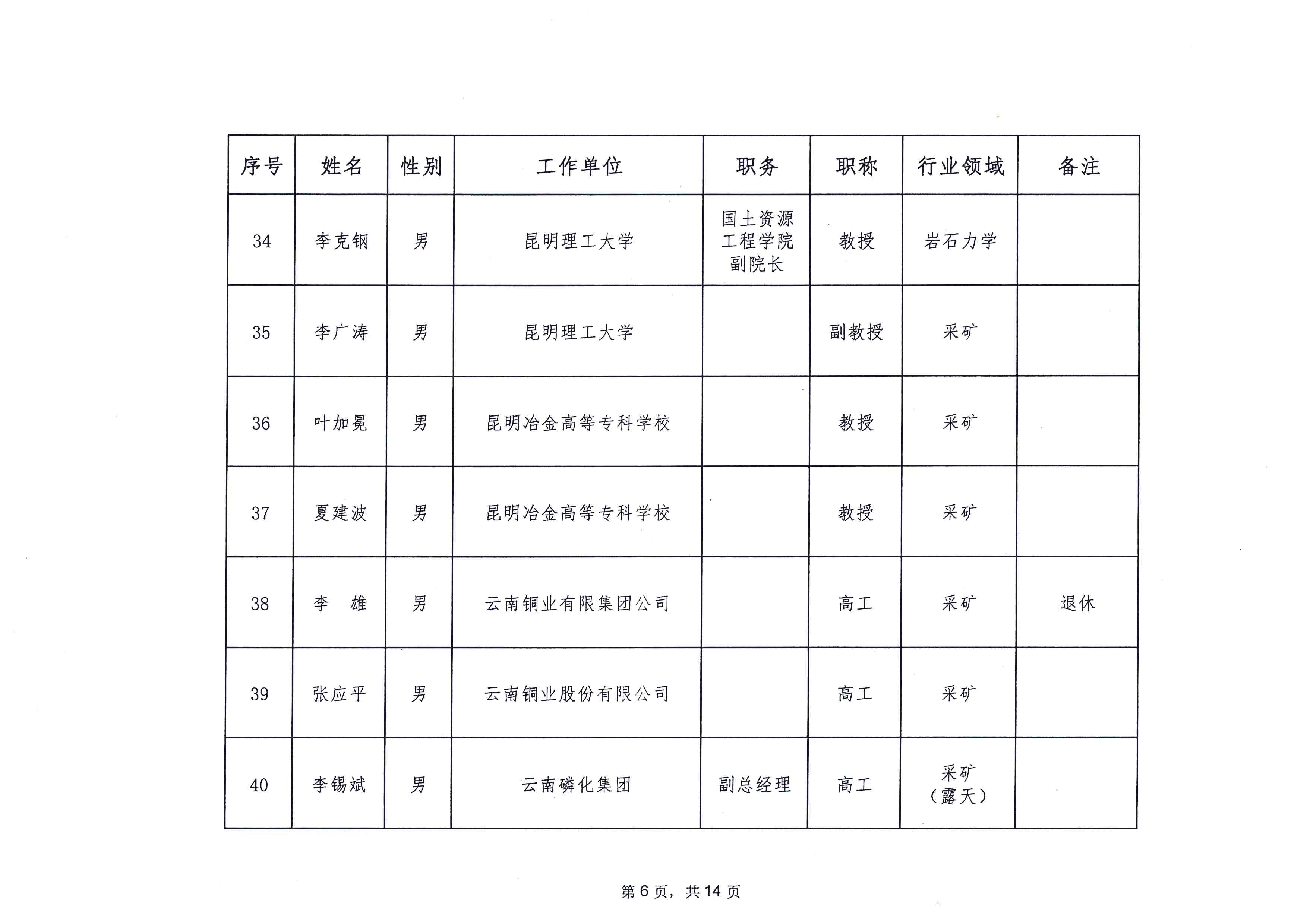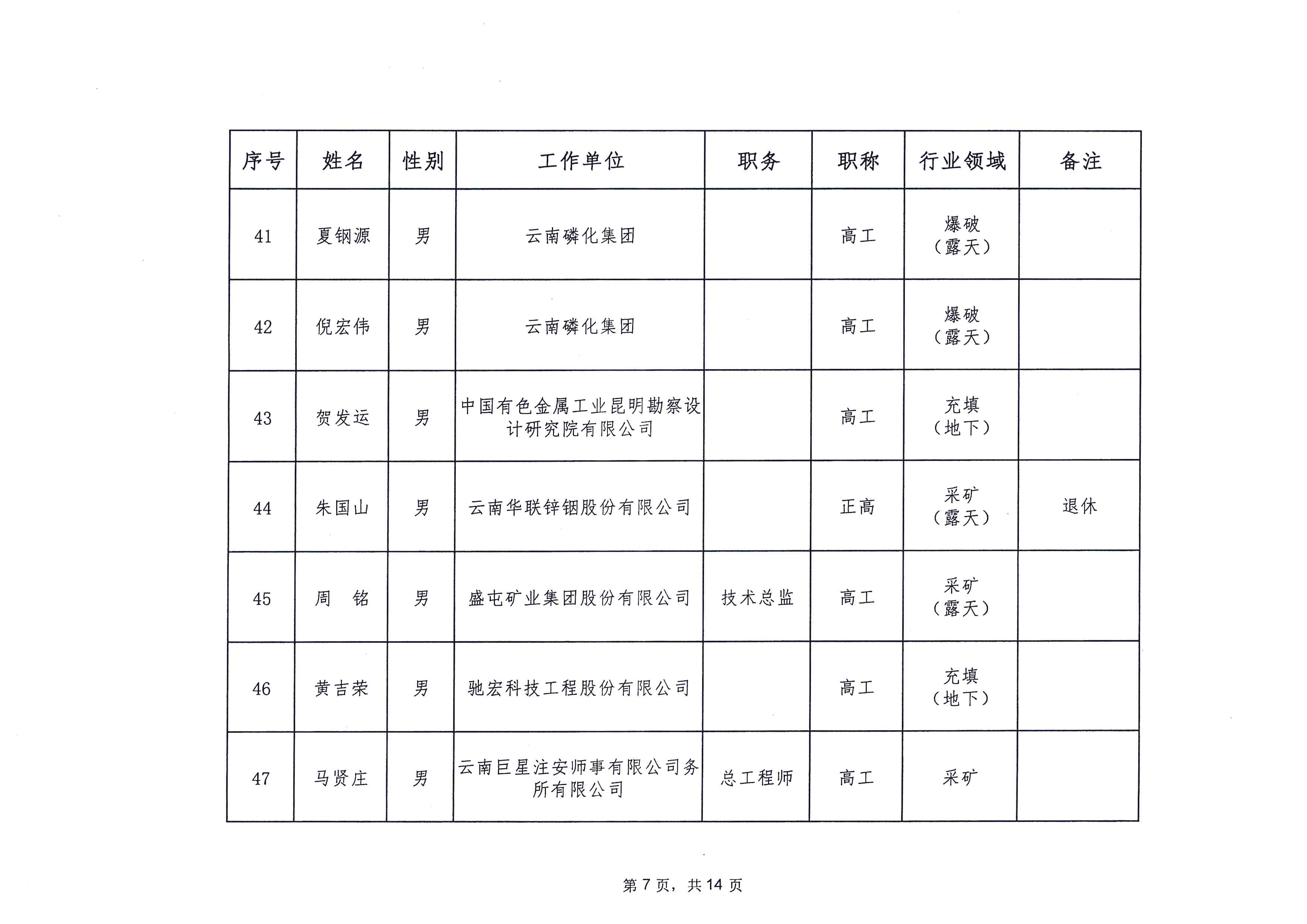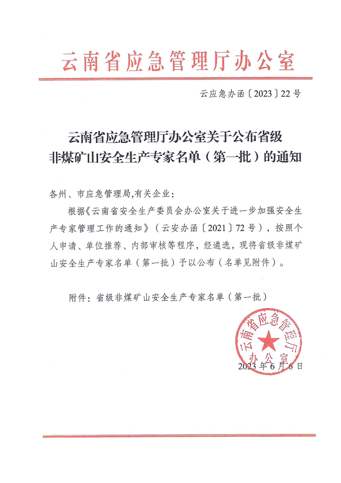 云南省应急管理厅办公室关于公布省级非煤矿山安全生产专家名单(第一批)的通知