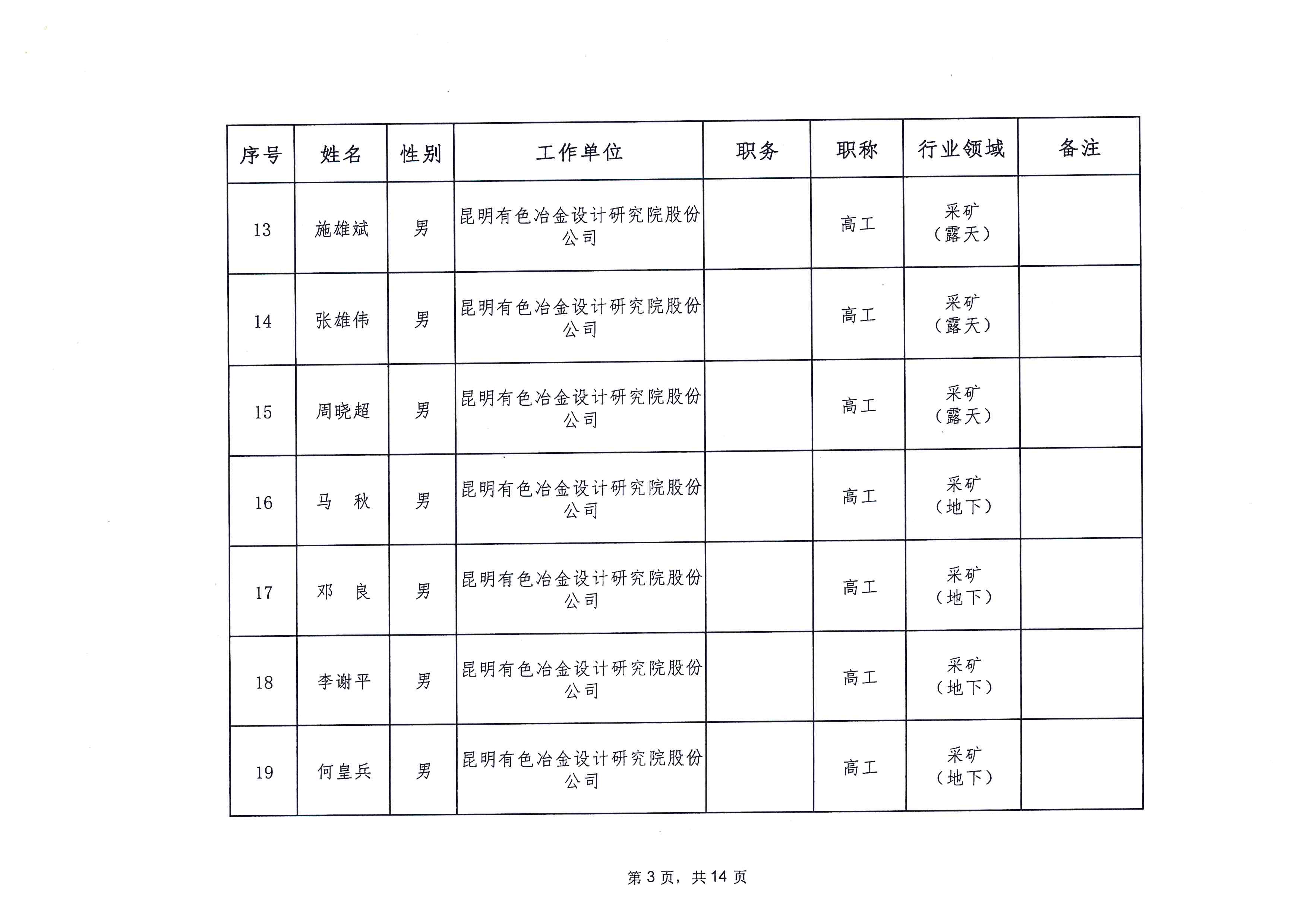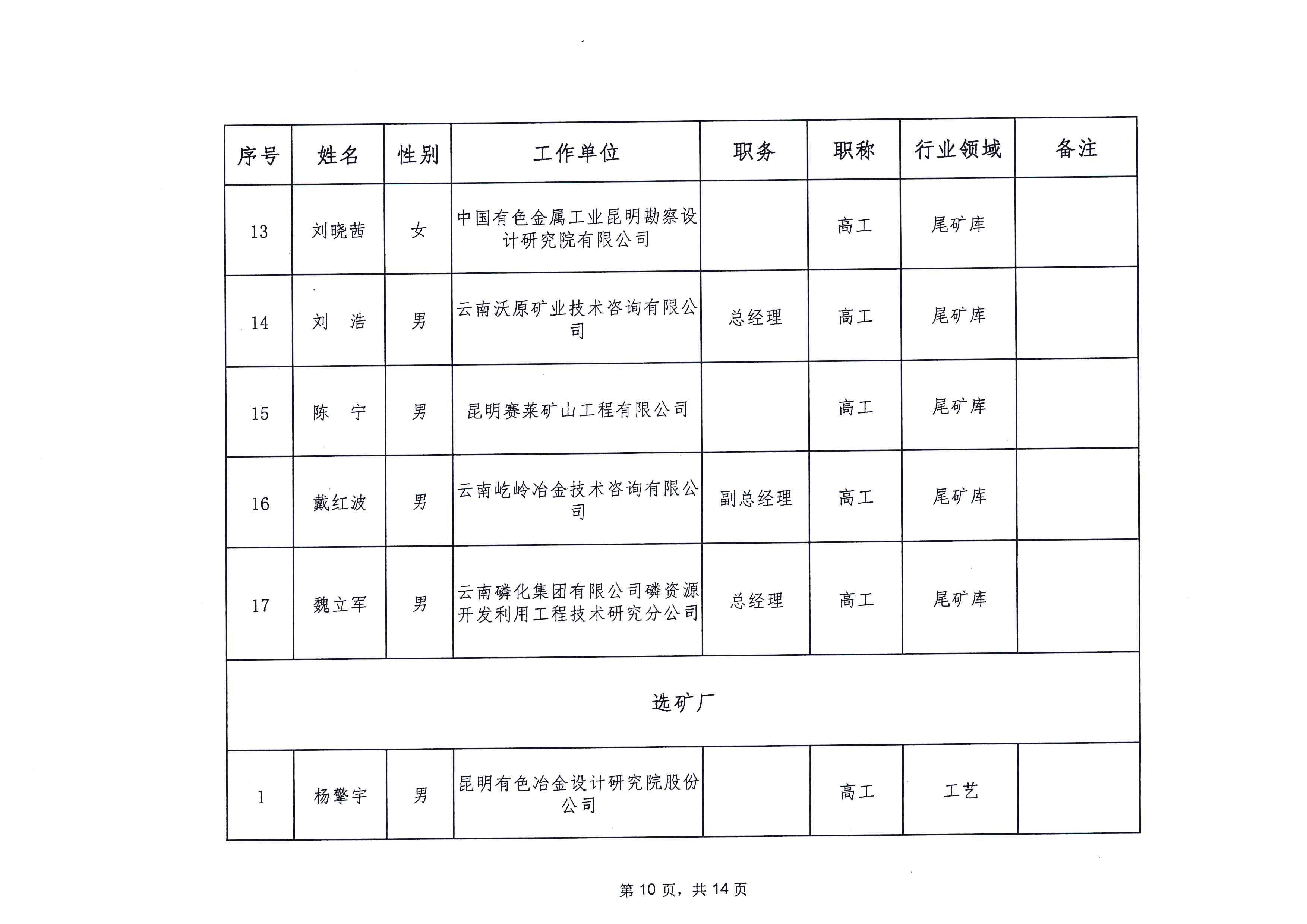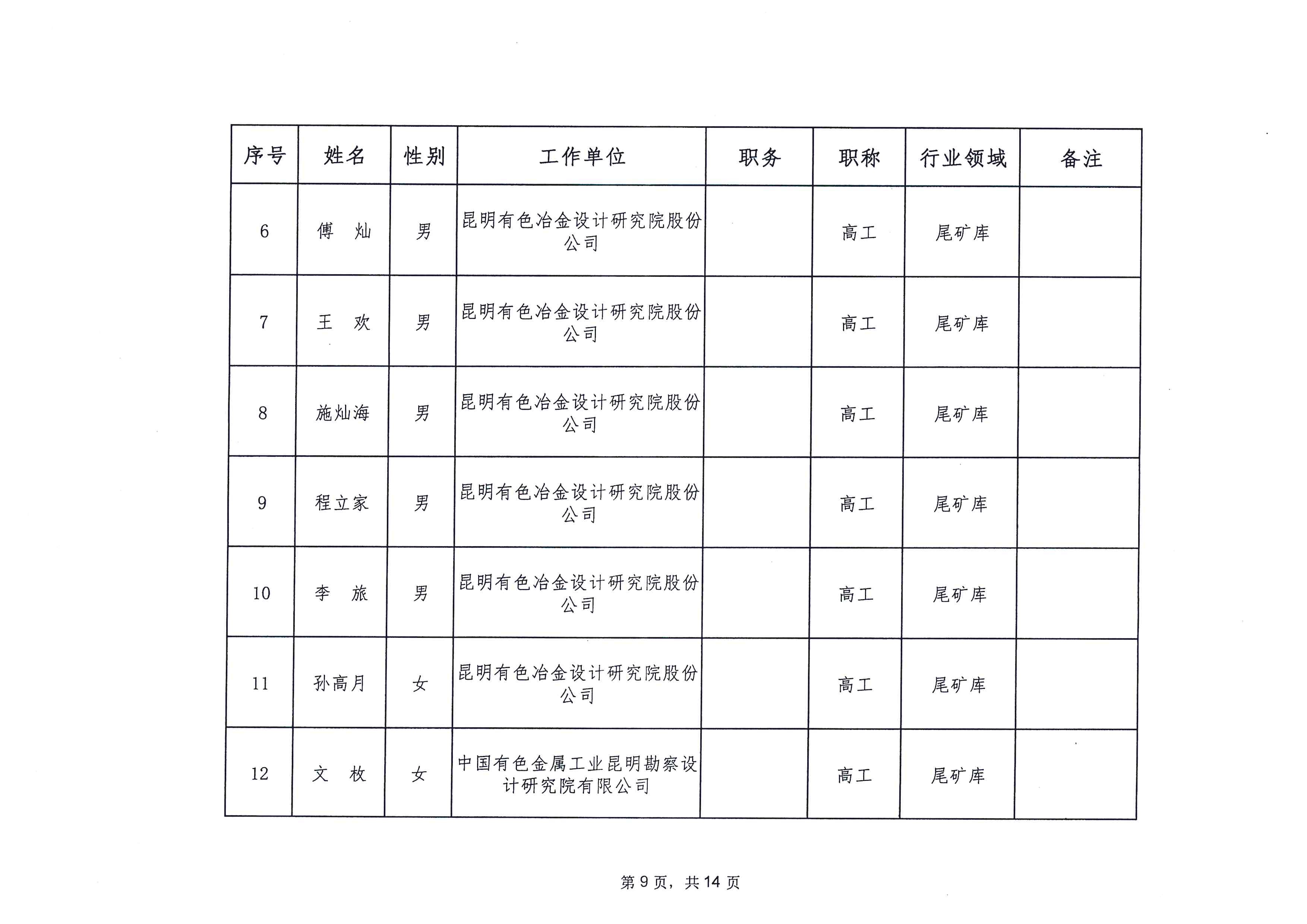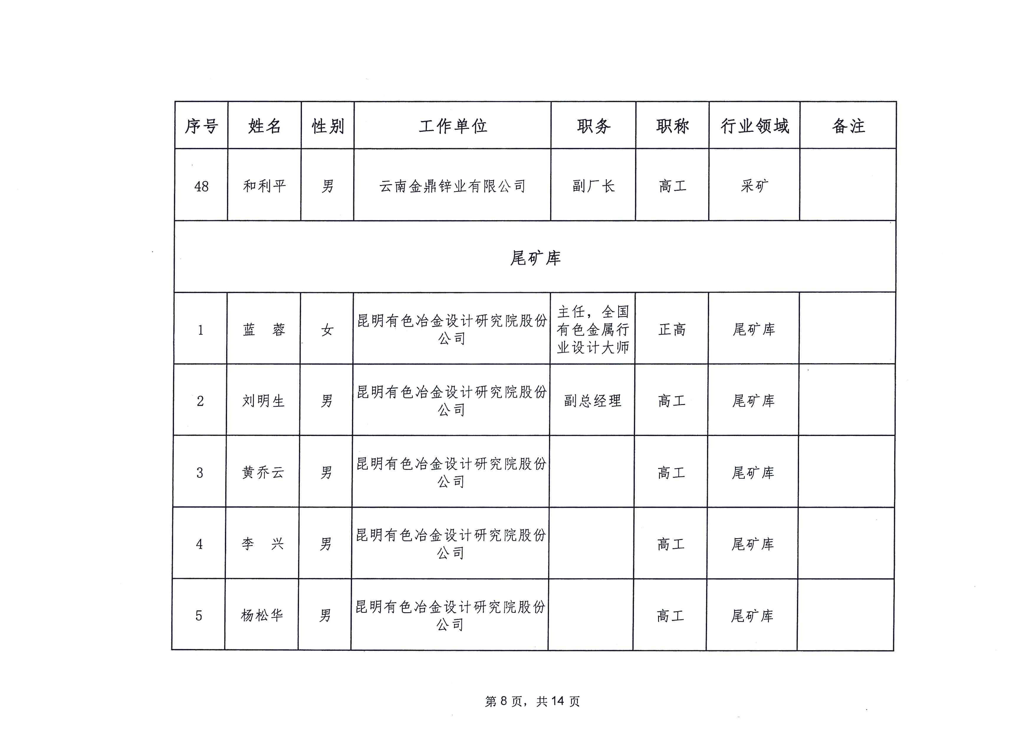 云南省应急管理厅办公室关于公布省级非煤矿山安全生产专家名单(第一批)的通知