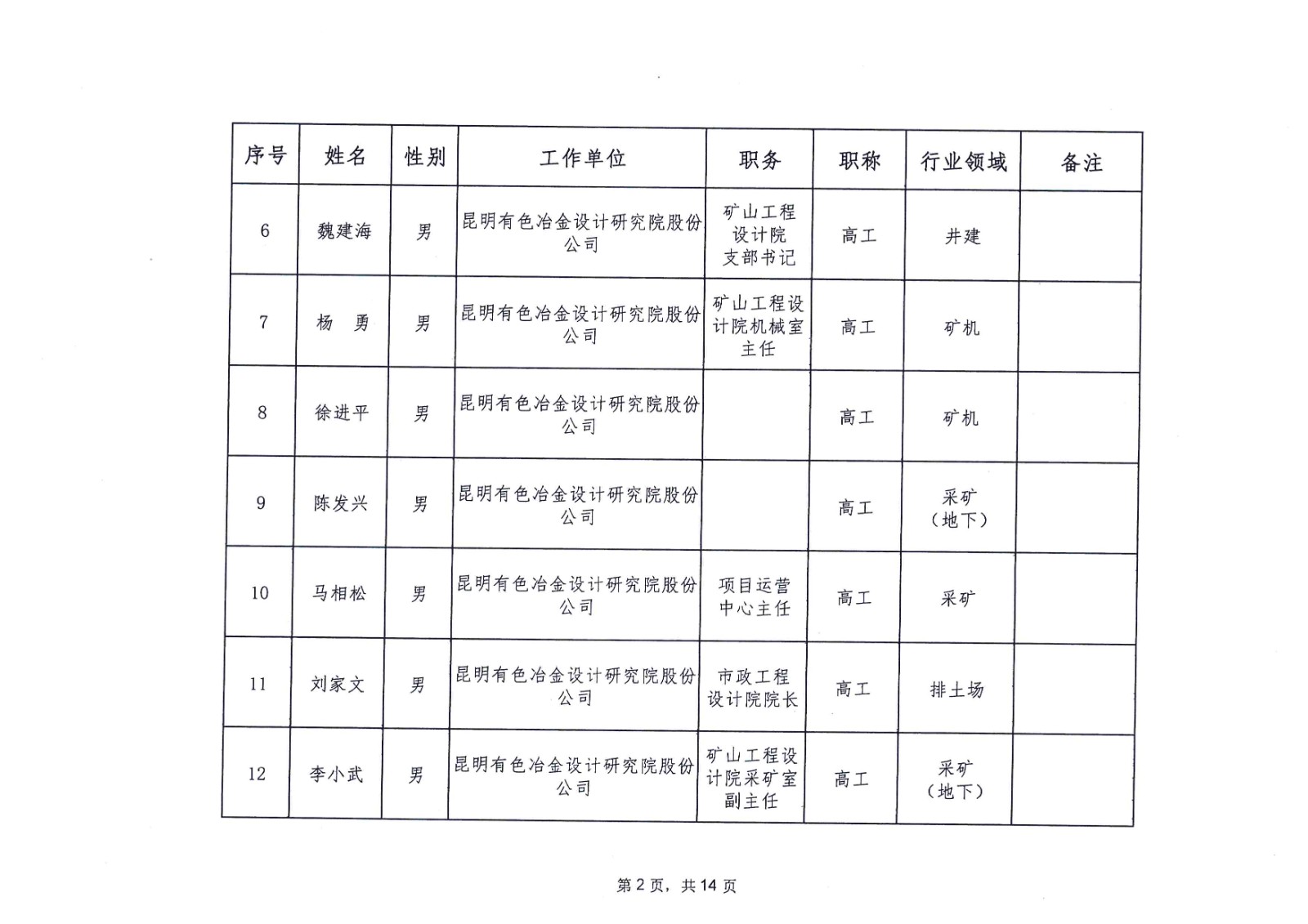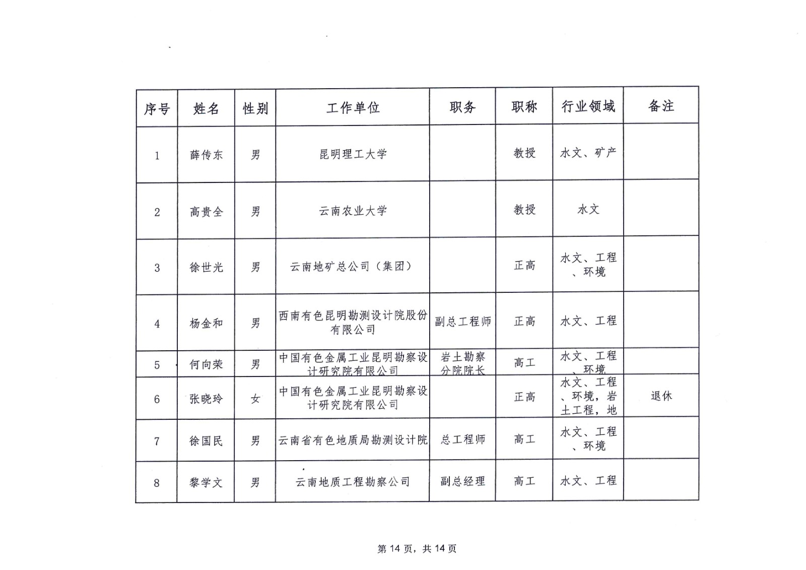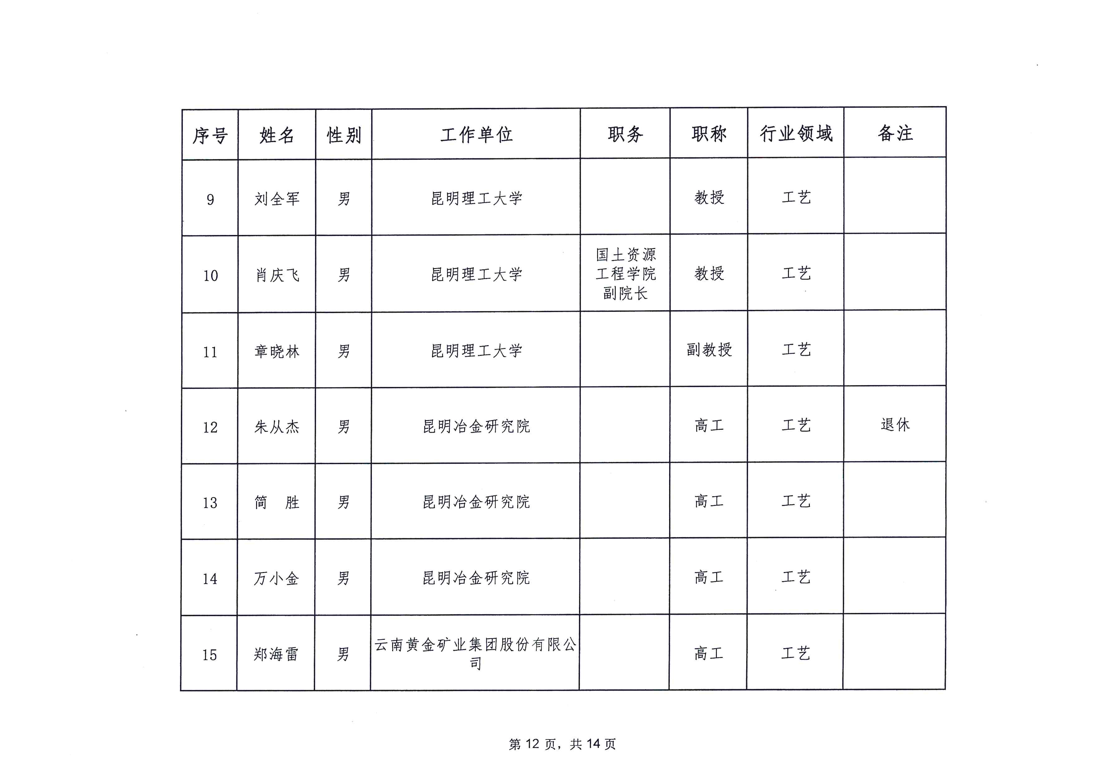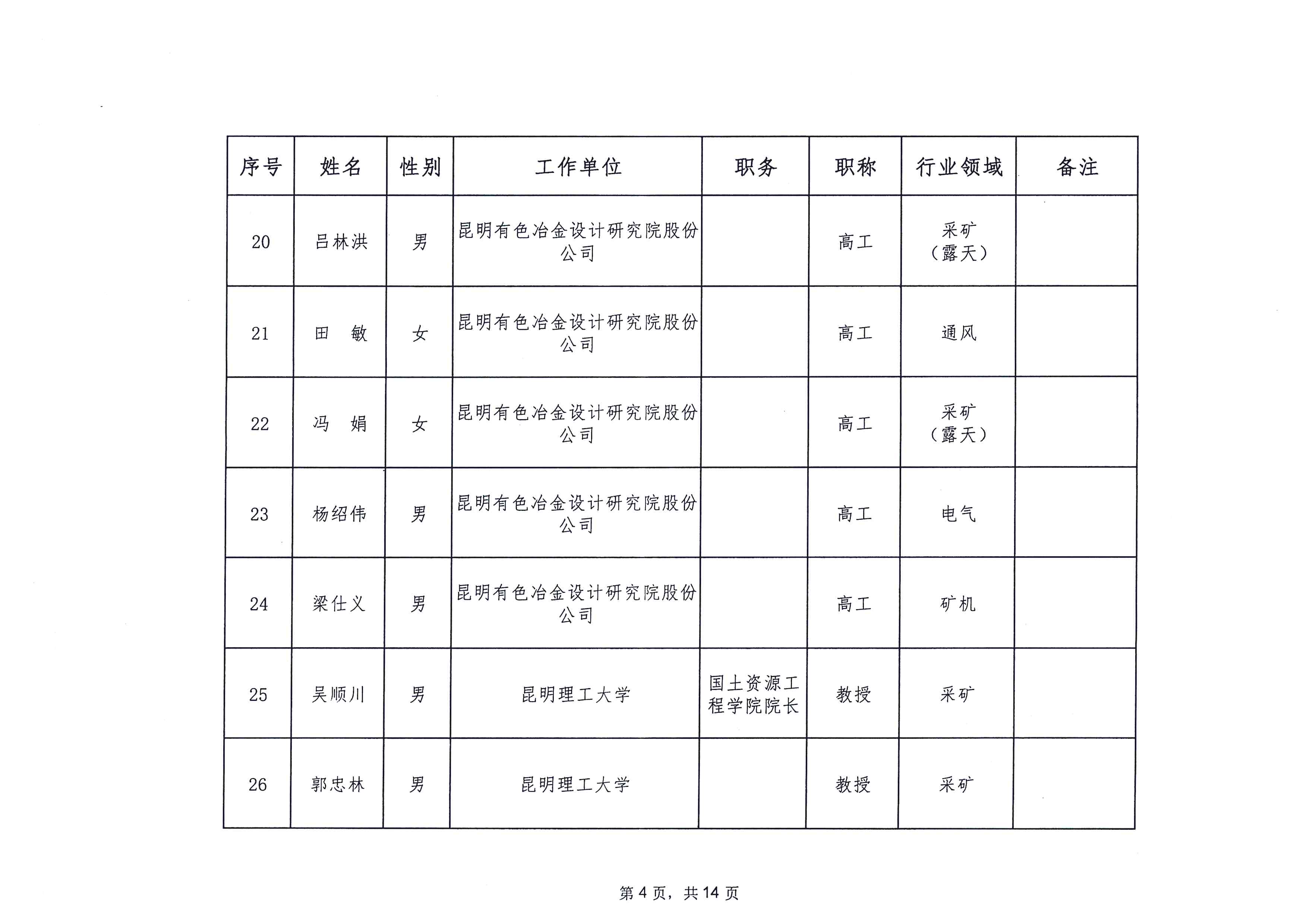 云南省应急管理厅办公室关于公布省级非煤矿山安全生产专家名单(第一批)的通知
